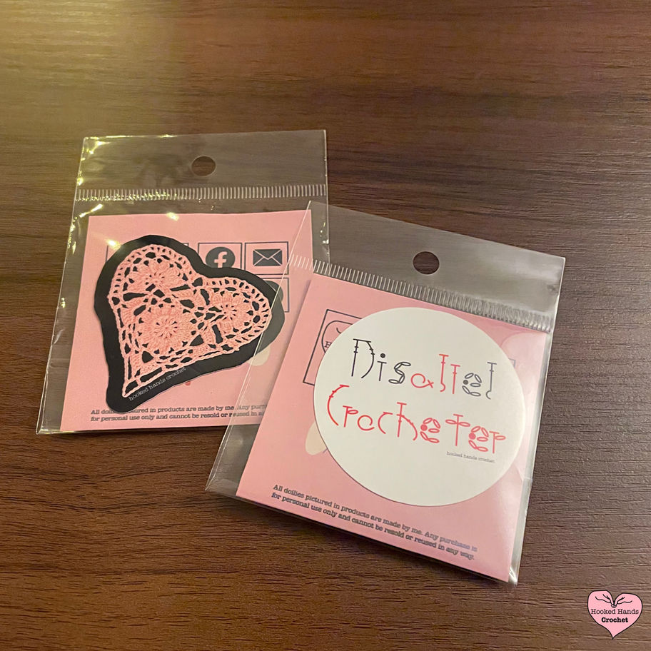 I handmade the item pictured on the sticker. I love candles, but this crochet one is very special with the "wax" forming a lace motif. I have my candle in my window, but with the sticker you can have it anywhere. Pictured here is the water resistant finish. Size: 2in